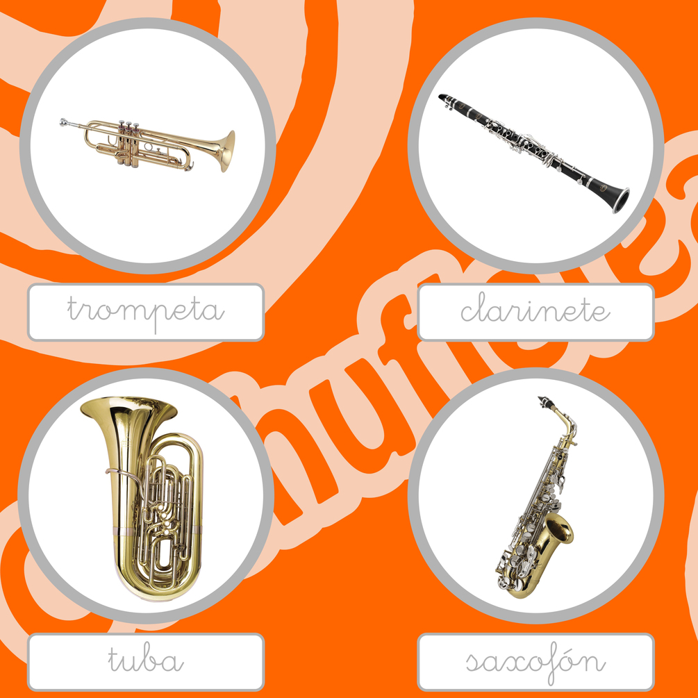 Trompeta, tuba, clarinete, saxofón, flauta de pico y flauta travesera.