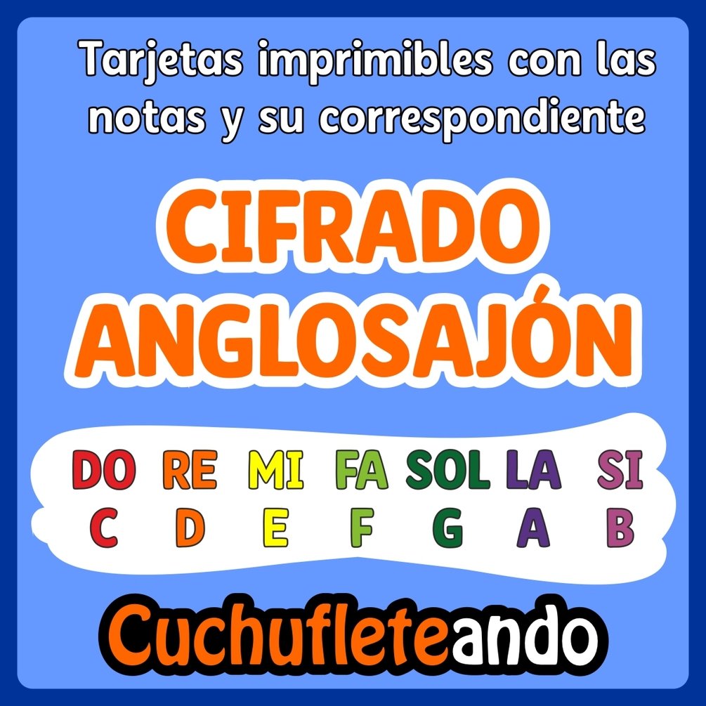 Tarjetas para recortar con el nombre de las notas y su corresponfiente cifrado anglosajón, coloreados con la gama de los Boomwhackers.